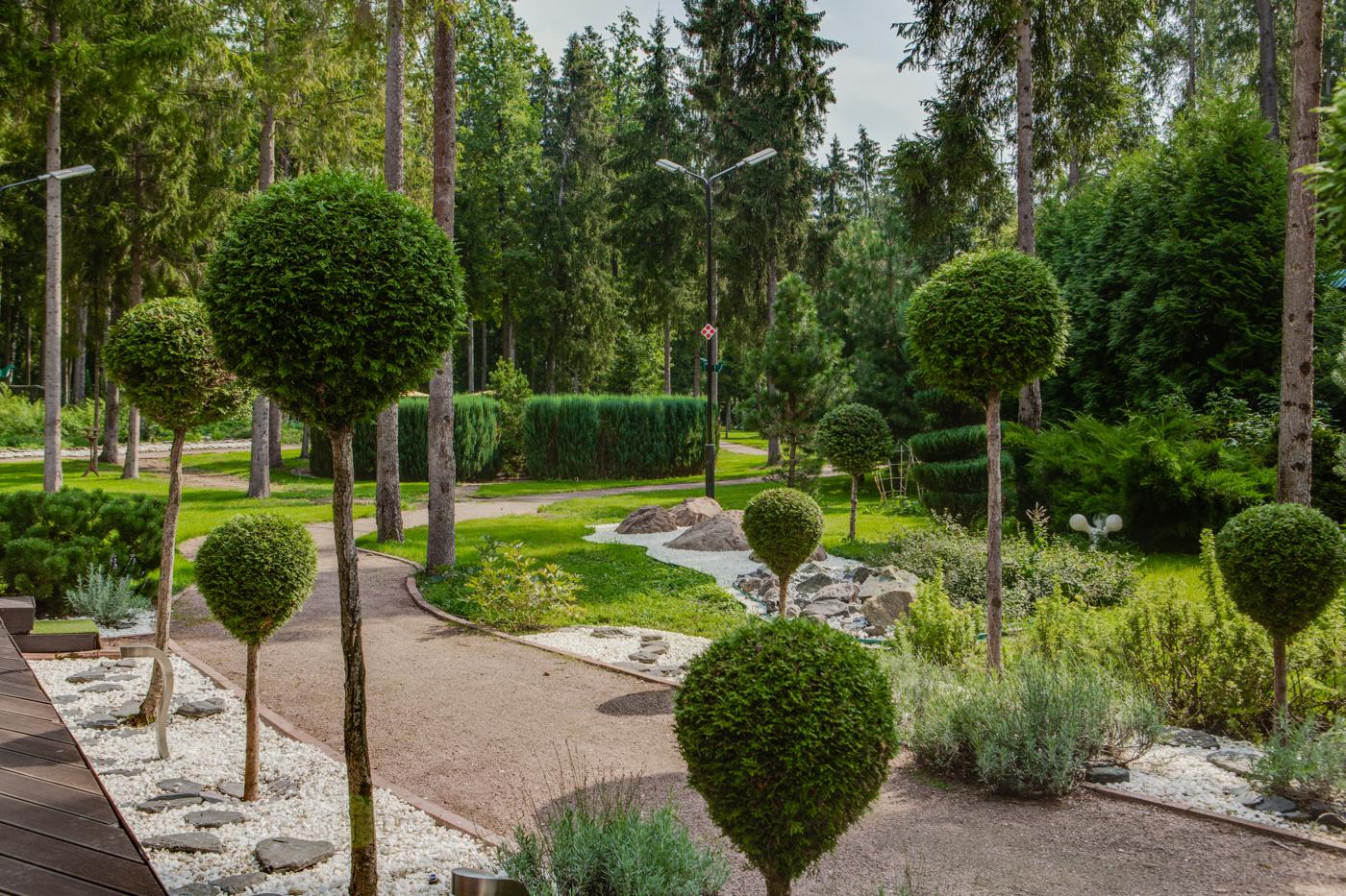Большой участок площадью 41 сотка утопает в зелени, создавая приватную атмосферу уединения и покоя. Придомовая территория с футбольным полем и спортивной площадкой добавляет активности и разнообразия в повседневную жизнь.